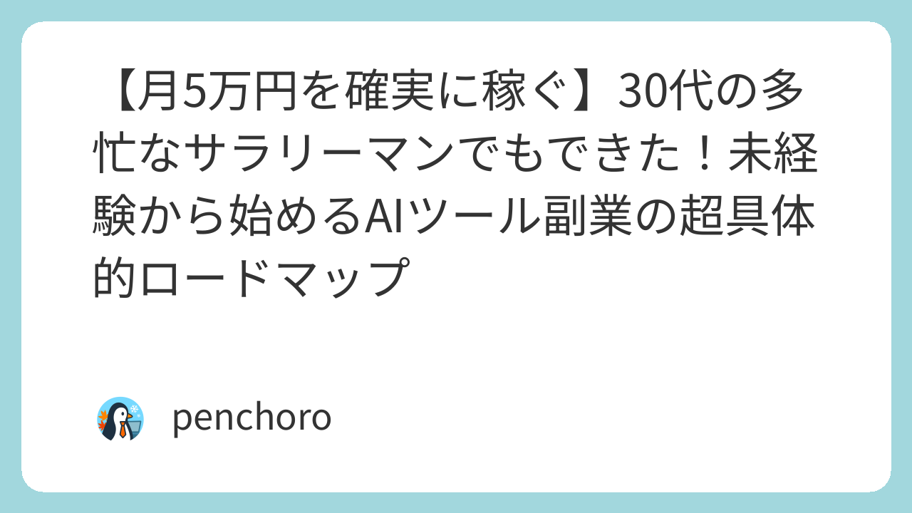 🚀 【月5万円を確実に稼ぐ】30代の多忙なサラリーマンでもできた!未経験から始めるAIツール副業の超具体的ロードマップ